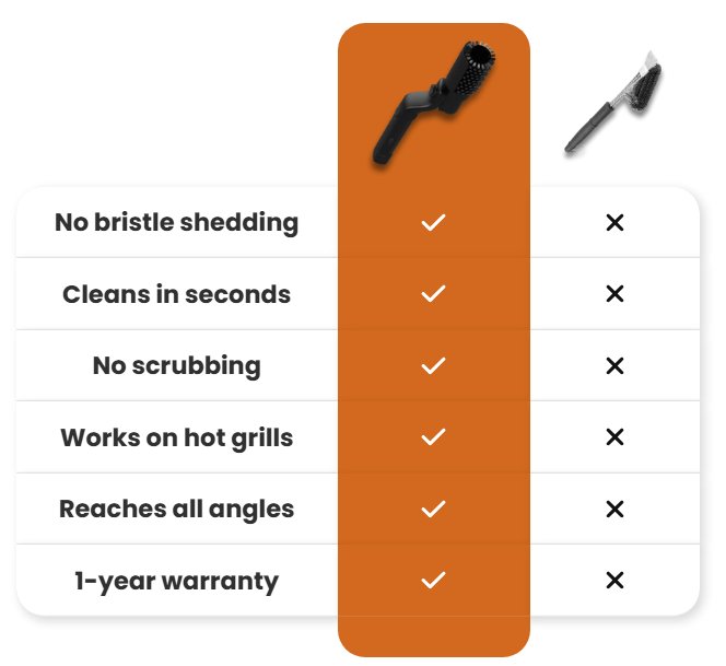 Stop wasting hours scrubbing your grill. Traditional wire brushes forceyou to scrub hard, bend over painfully, and still miss stubborn grease.Worse? Bristles can break off and end up in your food.